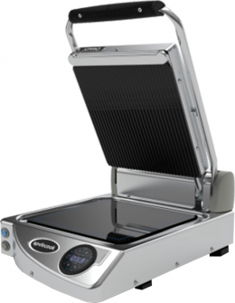Электрические контактные грили SPIDOGLASS серии SPIDOCOOK применяются на предприятиях общественного питания и торговли для приготовления и разогрева блюд из мяса, птицы, рыбы и овощей, а также горячих закусок (сэндвичей, бутербродов, тостов). Ключевой особенностью грилей этого типа является наличие двух рабочих поверхностей – нижней и верхней. Продукты укладываются на нижнюю и прижимаются верхней, что обеспечивает максимально быструю и равномерную прожарку с обеих сторон, позволяет получить хрустящую ароматную корочку и сохранить сочность продуктов.