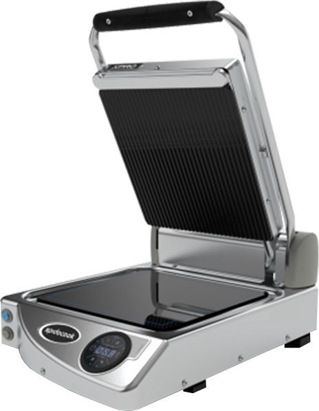 Модель с электронным управлением, 1 зоной нагрева 250x250 мм, гладкой и ребристой рабочими поверхностями.