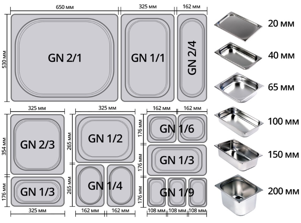 | Глубина гастроёмкости, мм | 65 |