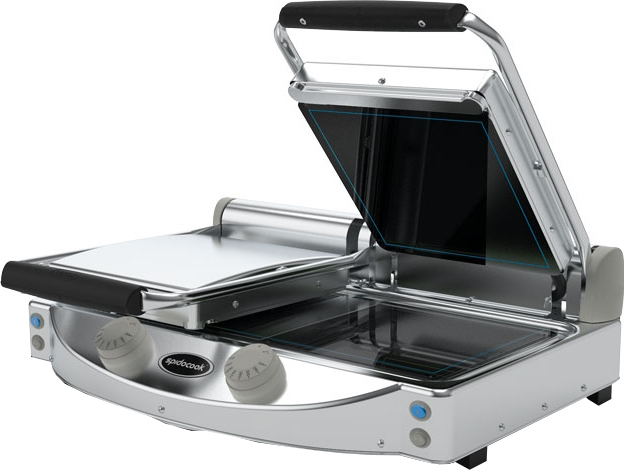 Электрический контактный гриль SPIDOGLASS SP020P (серия SPIDOCOOK™) предназначен для приготовления и разогрева блюд из мяса, птицы и рыбы, а также тостов, сэндвичей и горячих бутербродов. Идеальное качество и быстрота приготовления обеспечиваются благодаря равномерному нагреву и одновременному воздействию двух рабочих поверхностей, плотно прилегающих к продуктам. Ударопрочная, антипригарная, непористая и невосприимчивая к запахам стеклокерамическая поверхность чёрного цвета обеспечивает равномерное распределение тепла и высокое качество готового продукта.