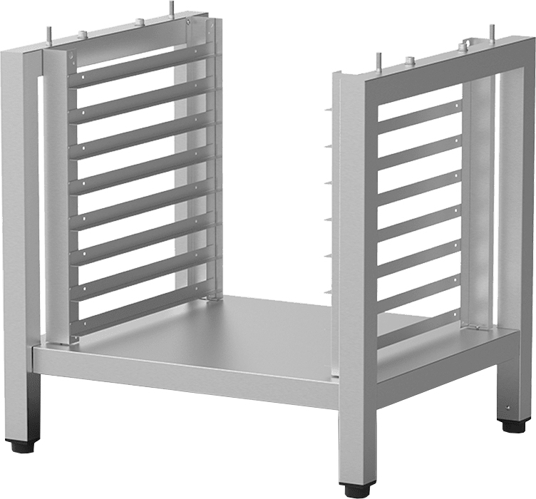 Открытый стенд с направляющими UNOX XEERC-0811-H предназначен для удобного размещения тепловых шкафов EVEREO™ шириной 600 мм, а также противней и гастроёмкостей размером 530x325 мм.